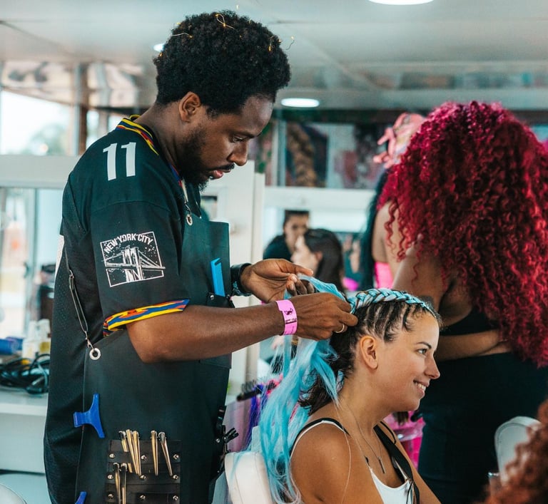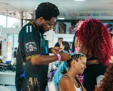 A beauty Station da Dreamville em parceria com a Barbearia Cartola Indaiatuba foi um sucesso absoluto! Oferecemos uma variedade de serviços para deixar todo mundo ainda mais bonito para curtir os shows. As tranças coloridas foram as grandes estrelas, mas também tivemos escova, lavagem, baby liss e barbearia. Cada cliente era uma nova oportunidade de criar algo único e especial.